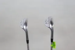 GOOD – This wedge set is in good condition. There is average wear around the heads and on the faces of the clubs from regular use. There are very small markings and scratches along the shafts from normal use and storage. The grips are in good condition with some wear from regular use and storage. Please see pictures for more details.**Sand wedge 56* loft 35 inches, Lob wedge 60* loft 34.75 inches**
